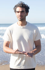 This is a a super-soft, relaxed crewneck shirt, with the smallest footprint on our planet, designed for everyday wear. This product has not been dyed, so it carries the raw, natural patina of the virgin, organic cotton fibers.